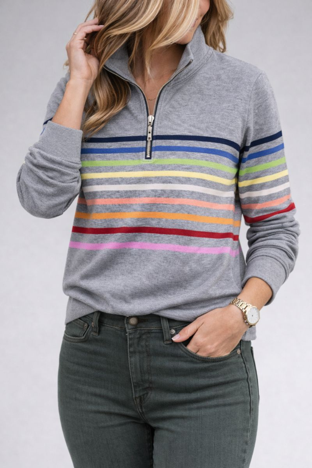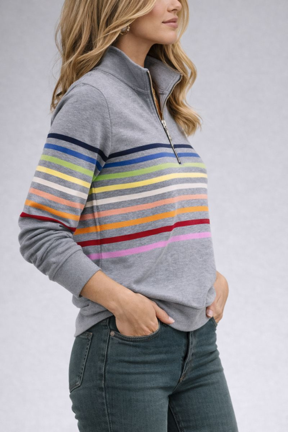 • Half zip with stand-up collar: Easy to adjust for warmth and style.